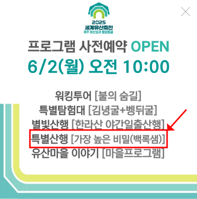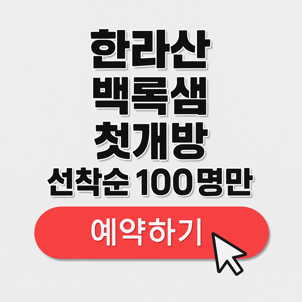 단 이틀, 오직 100명만! 한라산 정상에서 신비의 백록샘을 직접 만날 수 있는 기회가 찾아왔습니다. 평생 단 한 번뿐일지 모를 이 순간, 놓치지 마세요. 예약 전쟁은 이미 시작되었습니다! 언제 어디서 어떻게 예약해야 할지, 지금 바로 알려드립니다.